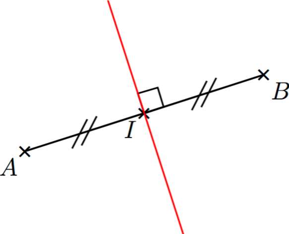 La médiatrice du segment $[AB]$ est la droite perpendiculaire à $[AB]$ et qui passe par son milieu.