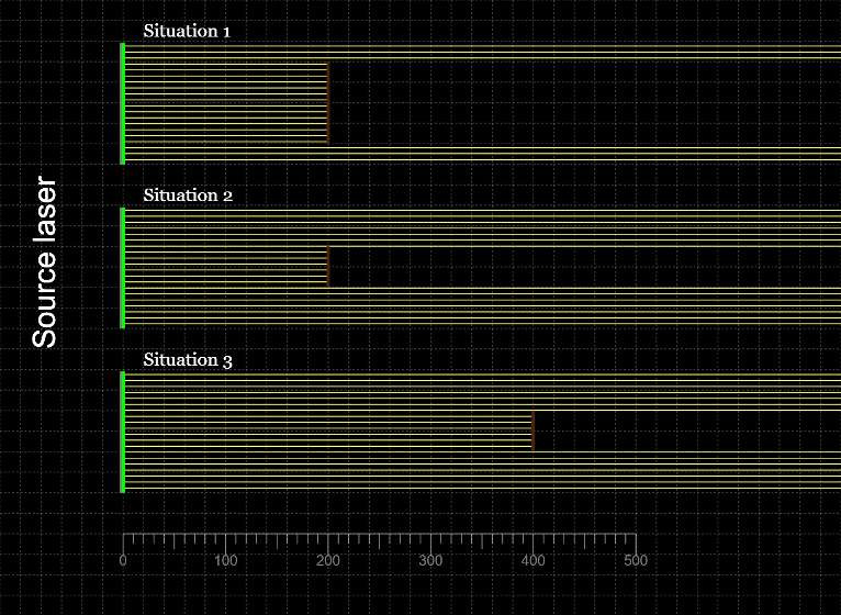 La source laser est identique dans les trois situations. La taille et la position du capteur changent.