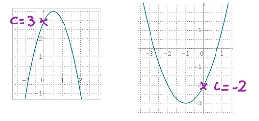 $c$ est l’ordonnée du point d’intersection entre la parabole et l’axe des ordonnées.