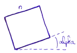 Écrire en python la fonction carre(n, alpha) qui trace sous turtle un carré de n pixels de côté incliné avec un angle alpha.
