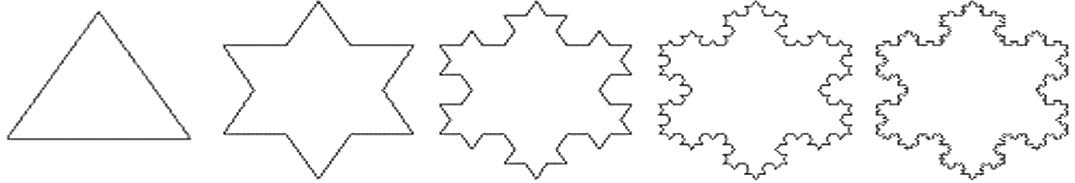 certain niveau d’itération. En physique, un miroir placé devant un autre miroir réalise une image fractale. Le flocon de Koch