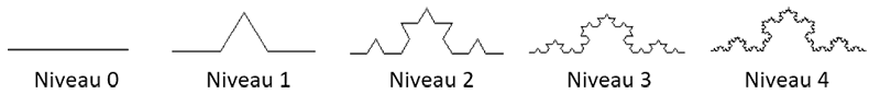 est un exemple de fractale et peut être obtenu à partir d’un segment, de façon récursive :