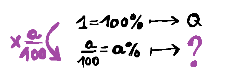 multiplier cette quantité par $\frac{a}{100}$ (ou $ a $ \%) Explication avec la proportionnalité :